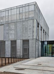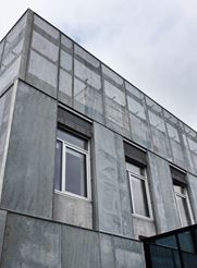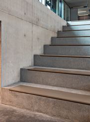 Dele af bygningen er opført med en ny grøn beton, der reducerer CO2-aftrykket på klimaet med op til 30%. Bygningen fremstår med vægge og gulve i synlig rå beton.