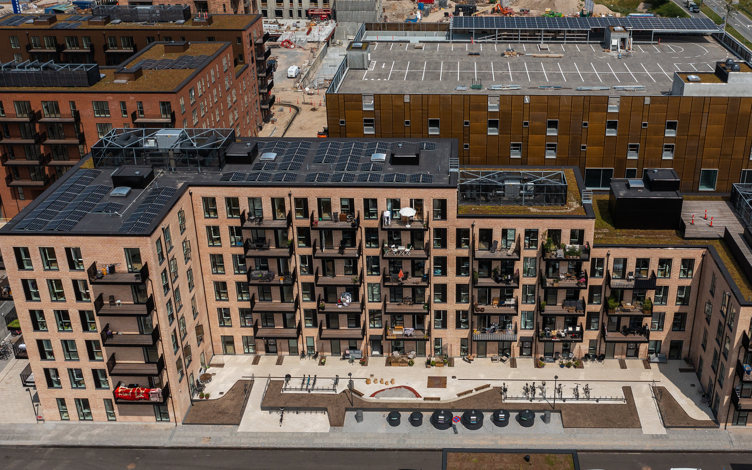 De 340 lejligheder samt erhvervshus med dagligvarebutik, lægehus, børnehave, cafeer, fitness og parkering har budt sine beboere velkommen i sommeren 2021.